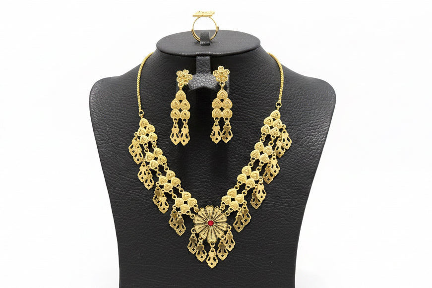 La parure fantaisie est composée d'un collier, une paire de boucle d'oreille.